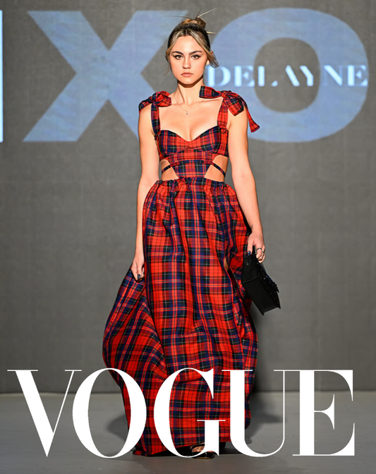 Every piece is carefully handmade in Canada by designer Delayne Dixon in her home studio, prioritizing precise detail and high-quality fabrics. Made-to-order processing times are between 3-6 weeks for ready-to-wear, and 6-12 weeks for couture and custom orders.